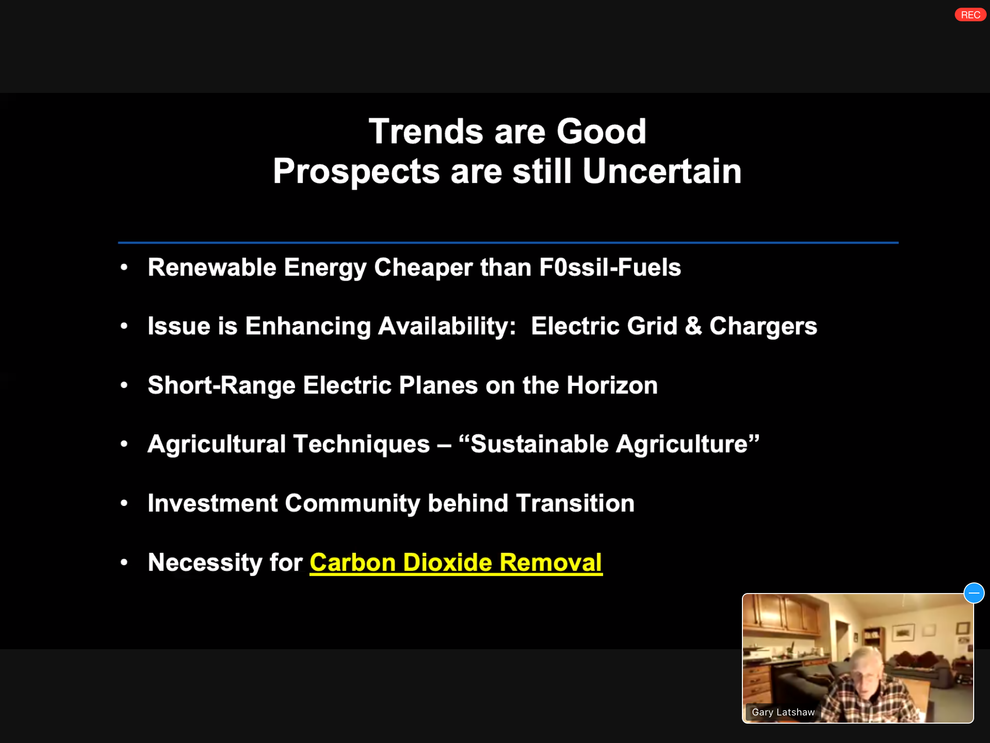 Dr. Gary Latshaw will present the scientific basis for the man-induced warming of the world and the consequences of this warming: sea-level rise, more frequent and intense storms, droughts destroying crops, and other treacherous phenomena. The warming can be stopped and reversed, but that will require a transition away from traditional fuels and agriculture techniques. Dr. Gary Latshaw received his doctorate in physics from Stanford University in 1971. Although his career primarily involved non-environmental issues, he maintained a serious interest in the environment and man-induced climate change over the years. Now retired Dr. Latshaw from working as a physicist in industry and colleges, he is a member of the Climate Reality Project and has become active in the Sierra Club, securethefuture2100.org, 350.org, BACE (Bay Area for Clean Environment), and others. He now serves on Cupertino’s Sustainability Commission.
